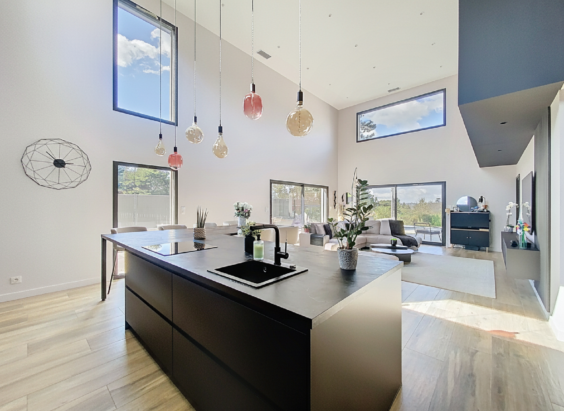– Cuisine ouverte sur pièce de vie : 60 m²