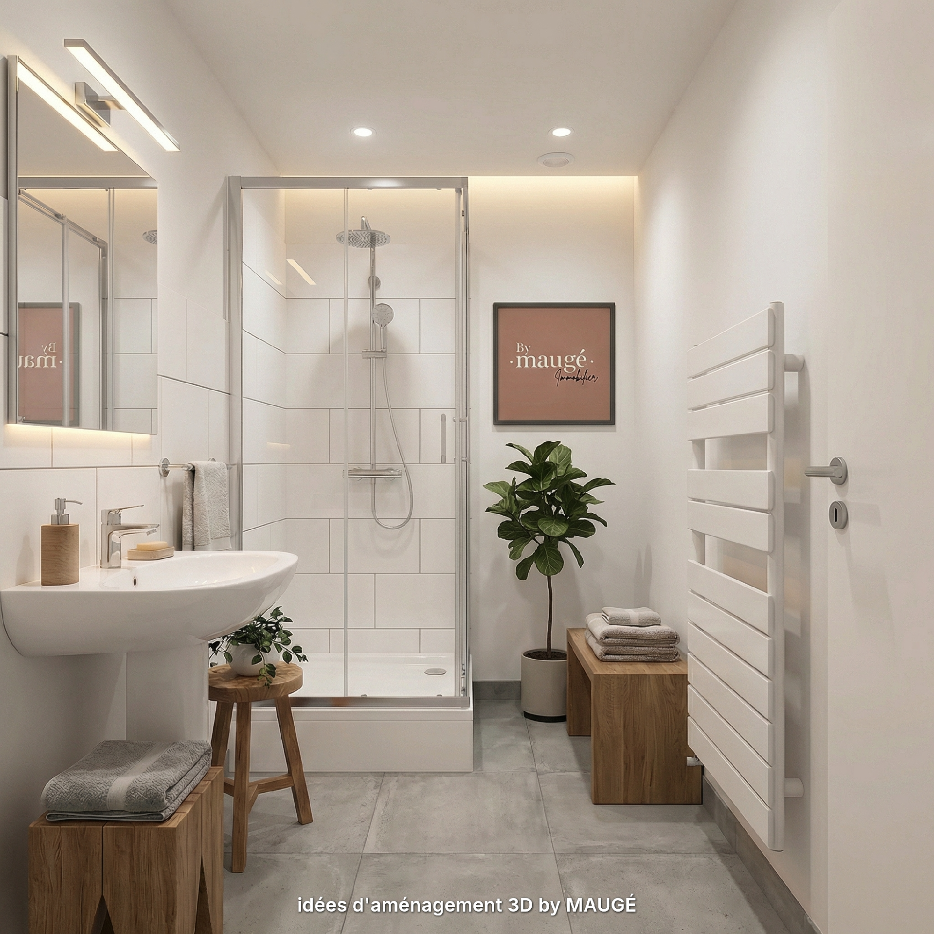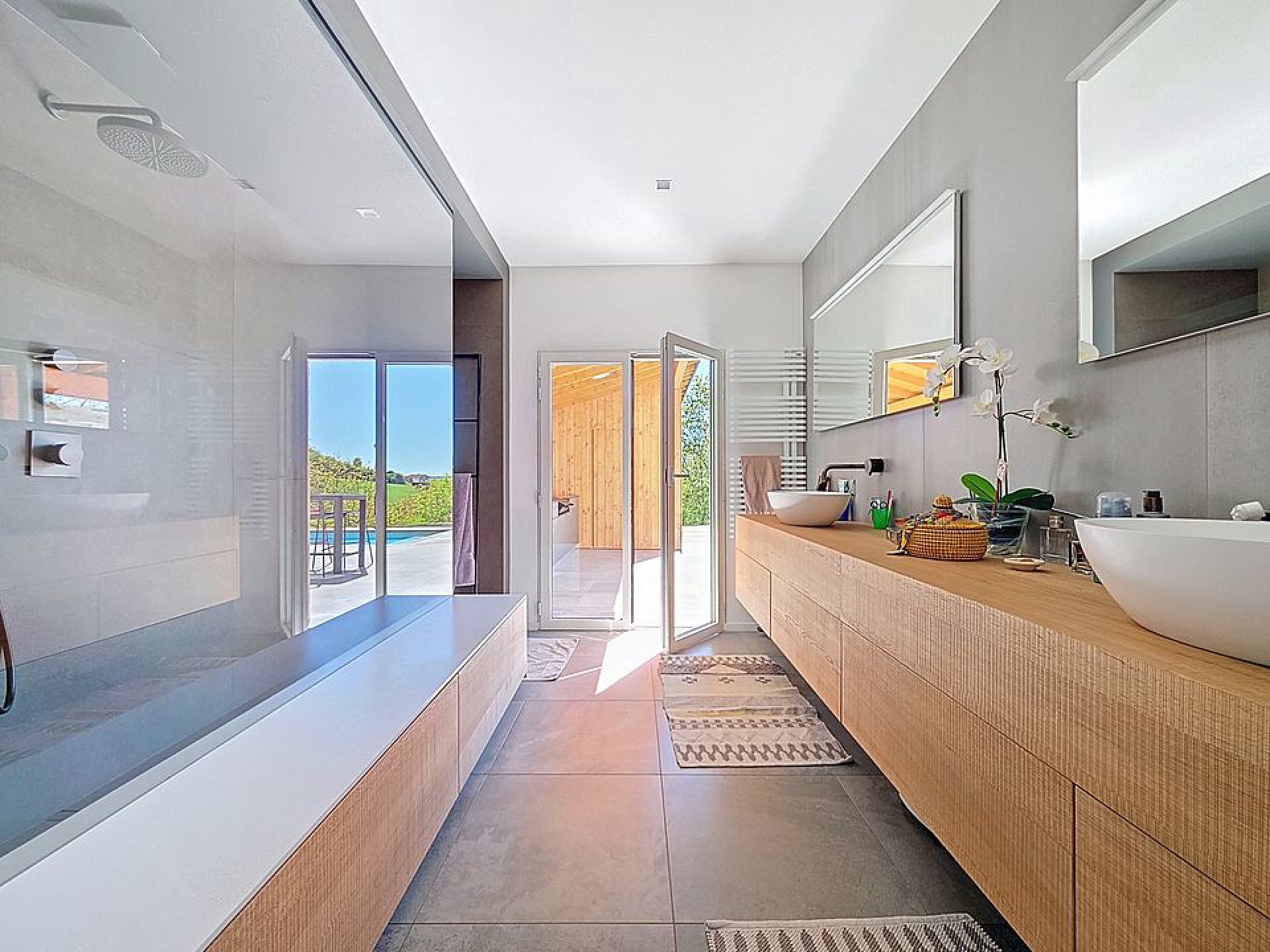 – Salle d’eau exceptionnelle avec double vasque, ouverte sur la terrasse : 11,39m²
