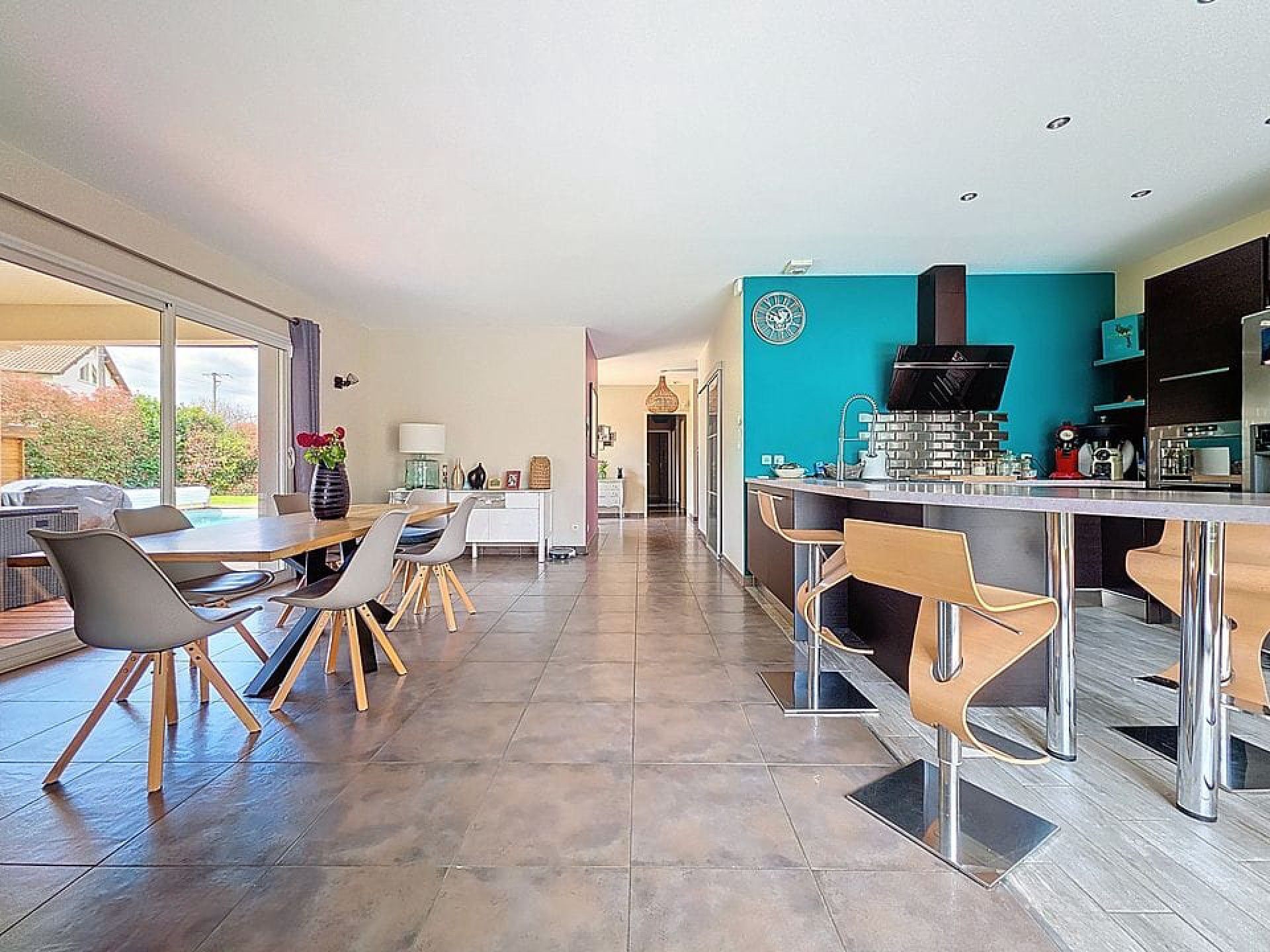 Nichée sur un terrain spacieux de 1432m² arboré et paysagé, elle invite à profiter pleinement des activités extérieures entre la piscine creusée et le terrain de pétanque. Venez la découvrir sans tarder !