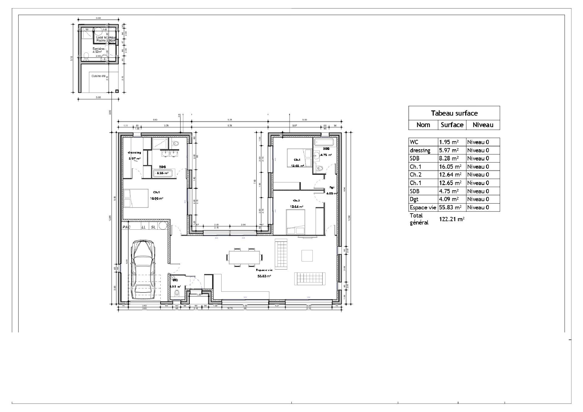 – Permis déposé et accepté pour une maison de 120m² en U